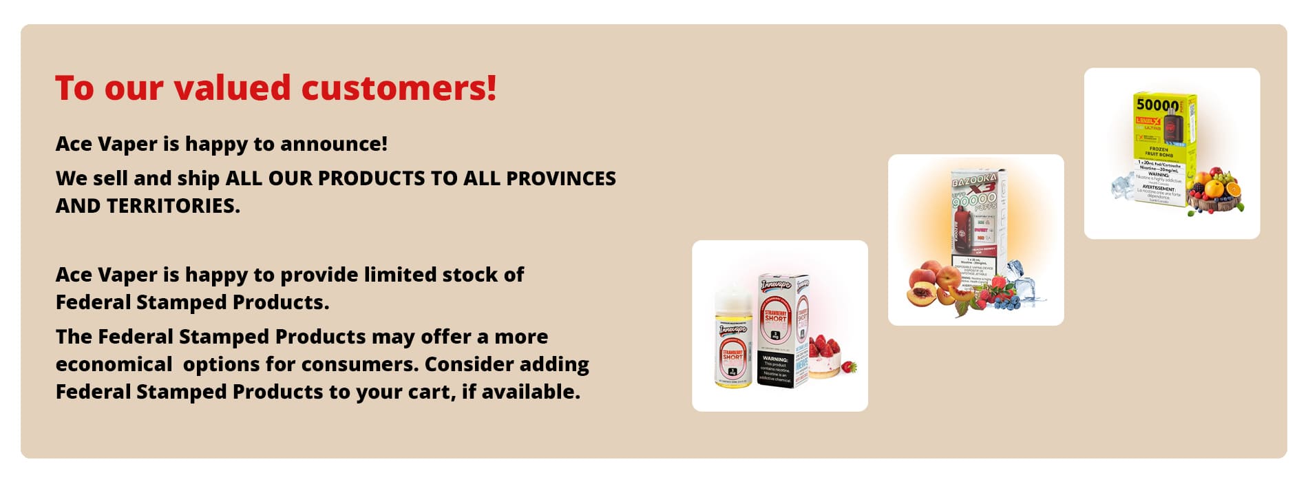 WARNING: Vaping products contain nicotine, a highly addictive chemical. - Health Canada