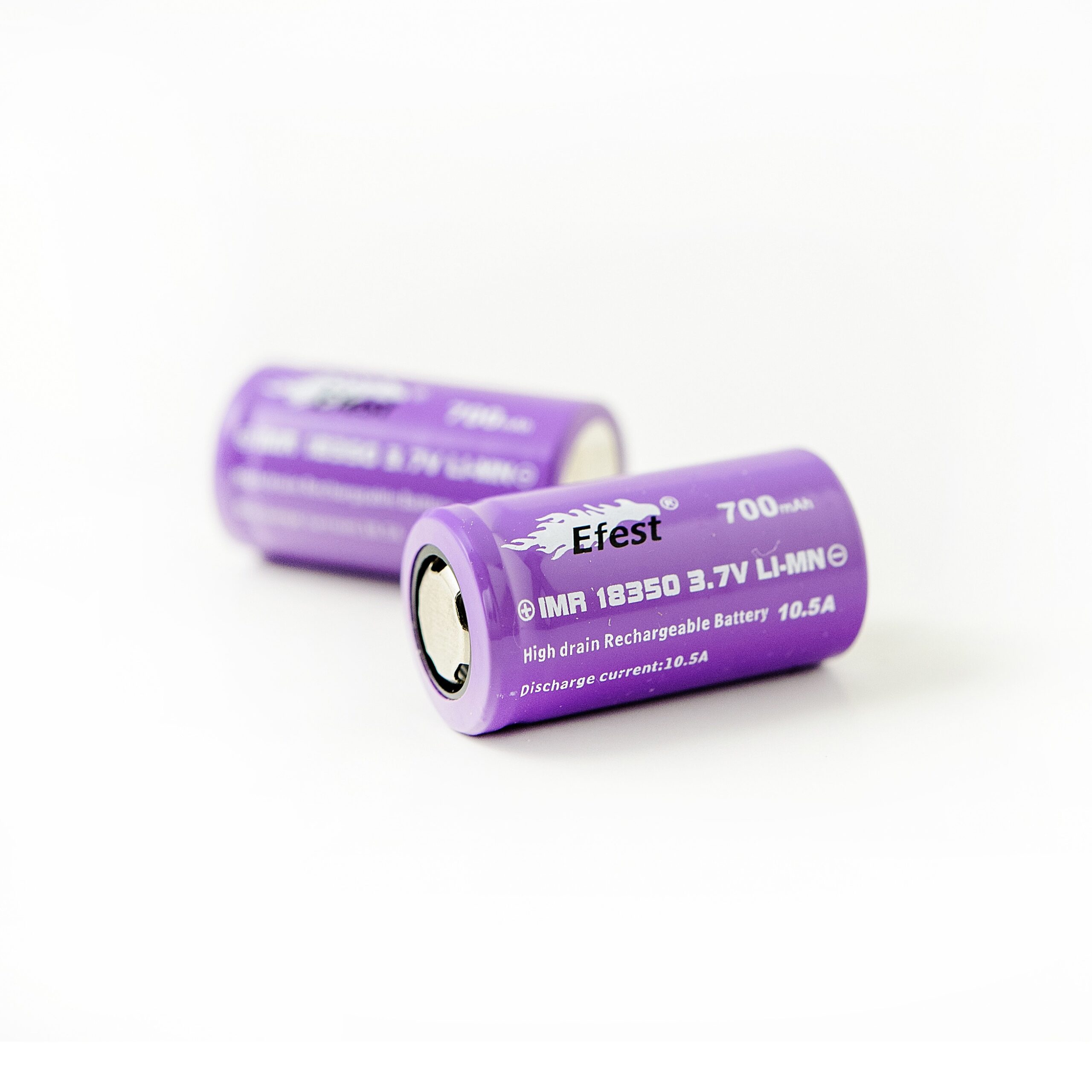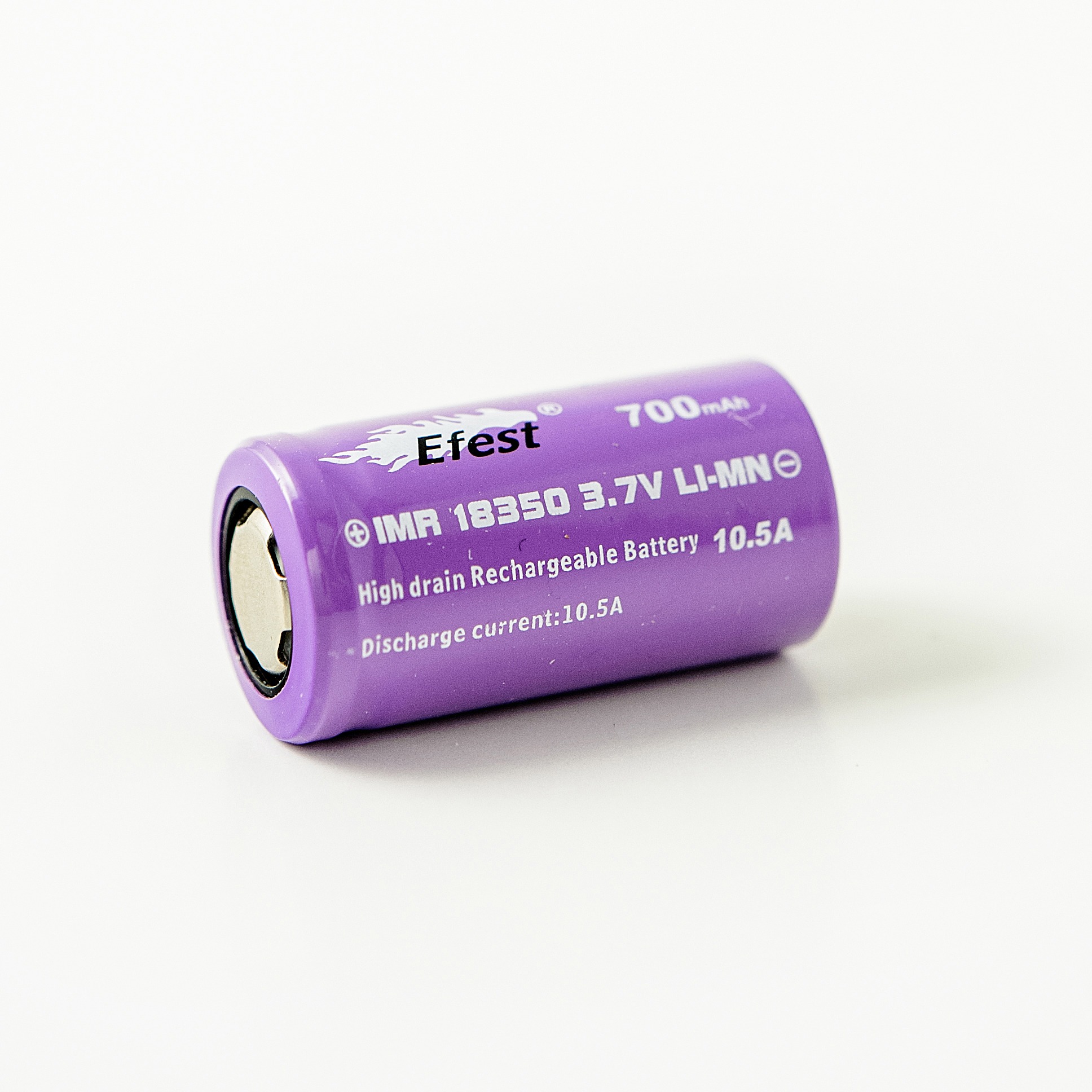 The Efest Purple 18350 IMR 700mAh 10.5A Flat-Top Battery is one of the best batteries for the Mechanical MOD / Rebuildable Atomizer / sub-ohm user.