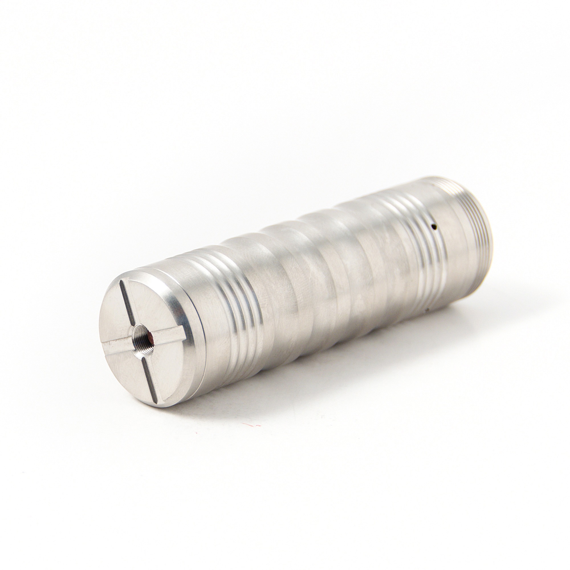 This is a high quality clone by KSD. It has a sturdy stainless steel construction with copper contacts, there is no doubt this one is a hard-hitter. The positive battery pin is adjustable so you can fit your 26650 battery with no rattle. Deep cut air channels in the top cap ensure that you get adequate airflow even on flash mounted tanks. The 26650 offers longer battery life.All in all, this is a tough looking mod that makes a statement.