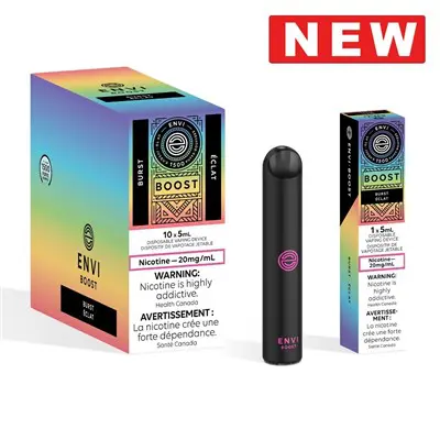 Burst Envi Boost is a disposable vape pod system powered by 900 mAh battery and housing 5mL internal vape cartridge allowing approximately 1500 puffs per device.
