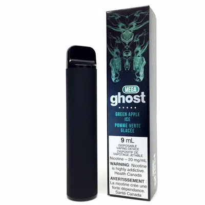 Green Apple Ice By Ghost Mega Disposable Vape is a disposable vape pod system with adjustable airflow control powered by 1500 mAh battery and housing 9mL internal vape cartridge allowing approximately 2500+ puffs per device.