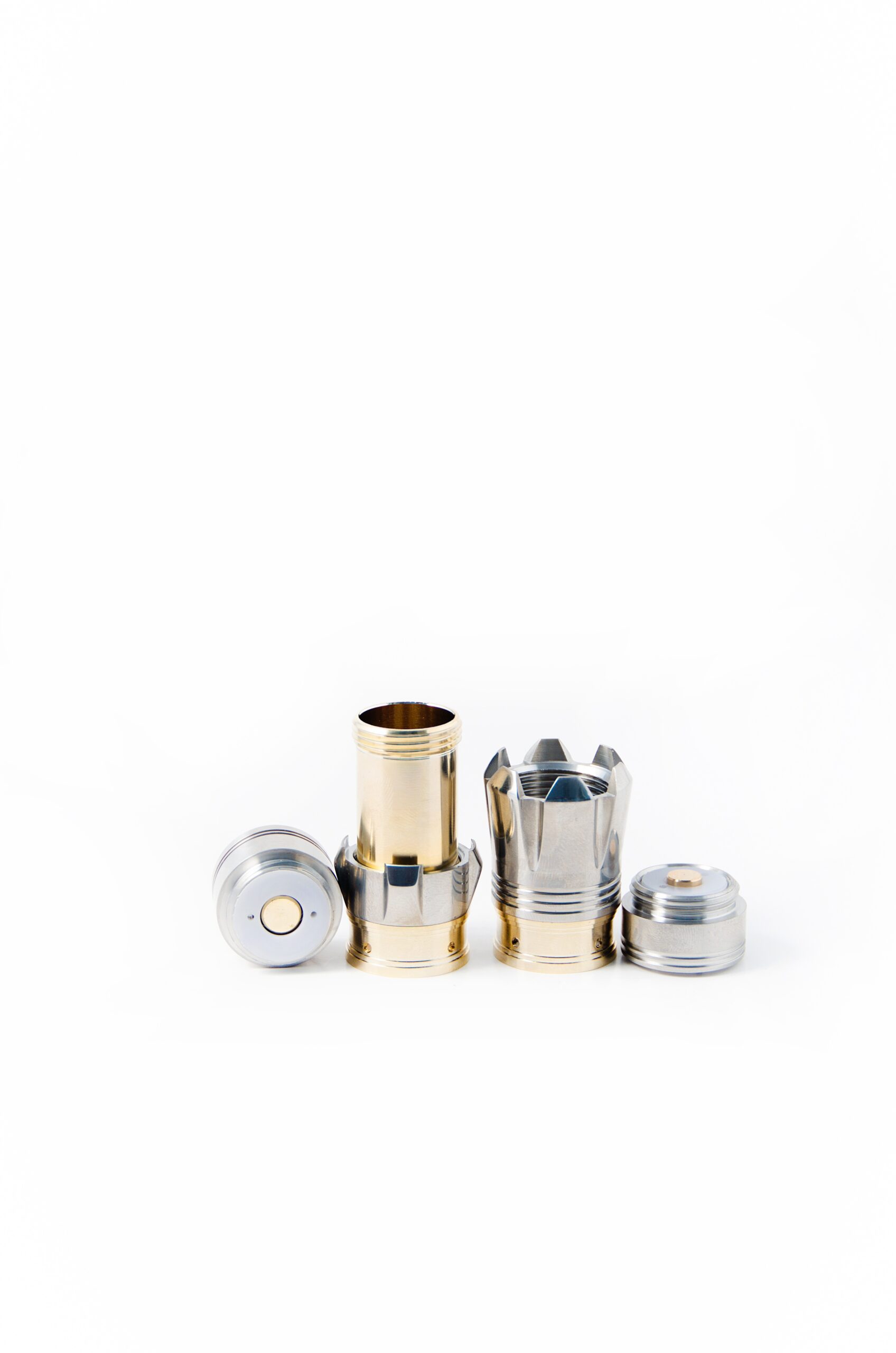 The Maraxus Mod is a high quality clone, it is a hard-hitting, uniquely designed mechanical mod that can be fully disassembled and configured in several ways according to taste! It is made of stainless steel and is machined extremely well. The flat top design has a recessed 510 connector and brass contacts to reduce voltage loss. It also features a spring-loaded floating positive pin, which makes certain that any device you use with it will fit flush and look great! The Maraxus works with both button and flat top 18350, 18500 and 18650 batteries.