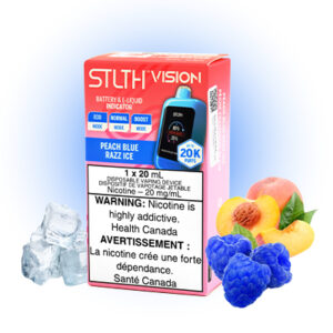 - Peach Blue Razz Ice STLTH Vision Disposable Vape --- Peach Blue Razz Ice STLTH Vision Disposable Vape Peach Blue Razz Ice combines the juicy sweetness of ripe peaches with the tangy, vibrant notes of blue raspberry; all topped off with an excellent menthol finish.
