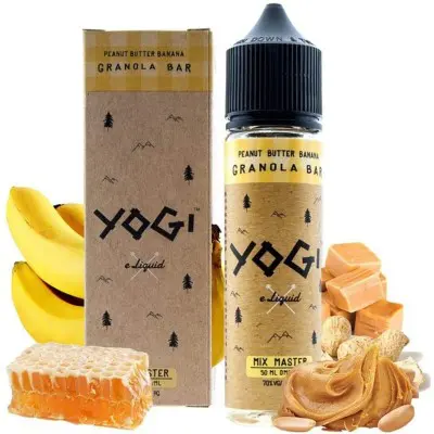 Peanut Butter Banana Granola Bar by Yogi E-Liquid pairs together creamy nutty peanut butter and blends it with an overtone of sweet bananas to combine with sweet oats and wheat to mimic a flavored nutritional bar.