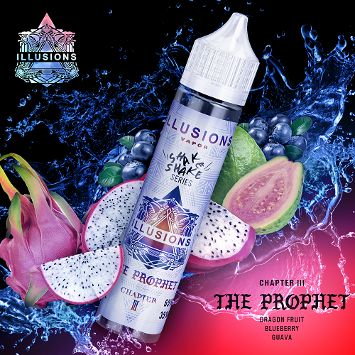 The newest offering by Illusions Vapor, The Prophet is a tropical medley of dragon fruit and juicy blueberry with a refreshing guava finish. 60Ml Bottle 70VG/30PG