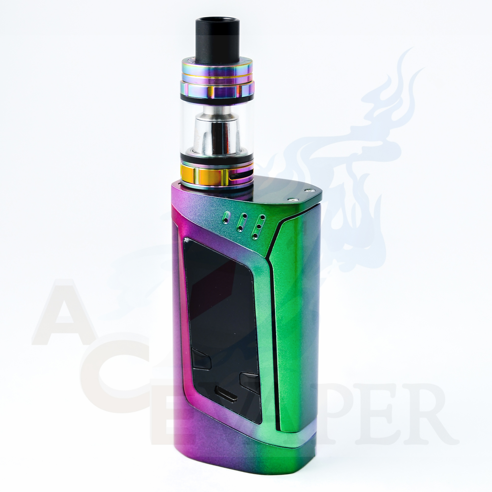 The SMOK Alien 220W TC Starter Kit is truly out of this world, integrating a unique statement piece with ultra-performance chipset with 220W of maximum power and full temperature regulation alongside the widely popular TFV8 Baby Beast Tank. The Alien 220W Box Mod measures 85mm by 44mm by 30mm, featuring an elegant soft contour along the zinc alloy chassis, integrating stunning colorful inlays for a stellar showcase piece. The epicenter of functionality lies within the new enlarged OLED display, providing extensive information within an easy-to-read operational interface. Along with unique placement of adjustment buttons and stealth firing mechanism, the Alien 220W is built for superb ergonomic form factor. The chipset is notably intelligent, providing a wattage range of 6 to 220W, minimum atomizer resistance of 0.06ohm, and full temperature control suite with support for Ni200, Titanium, and Stainless Steel heating elements. Integrated within the internal onboard is a plethora of safety features, including battery series connection. The SMOKTech TFV8 Baby Beast Tank is the compact evolution of the the unrivaled TFV8 Cloud Beast Tank featuring a well-balanced dynamic range with 3mL juice reservoir, precision airflow control, signature hinged top-fill system, and introducing the new Baby Turbo Engines coil structure.