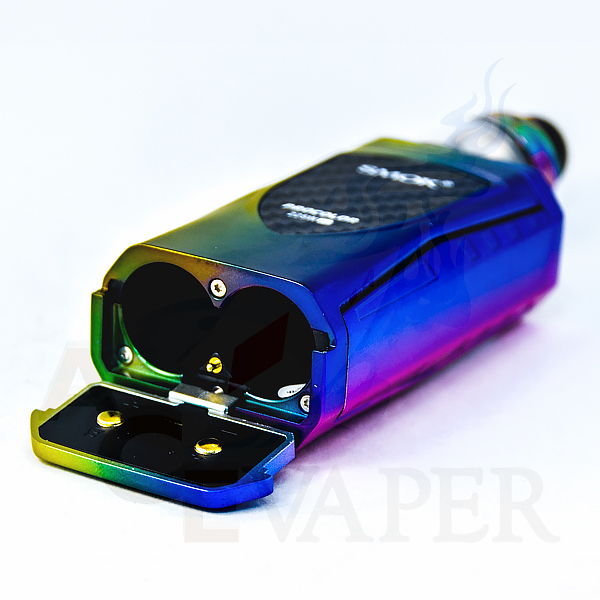 Taking the spotlight in cutting edge vaping technology comes the Procolor 225W mod by Smok. Featuring a multi-color light band accentuating the beautiful high definition 1.3 inch color display, this band can be completely customized to exhibit a wide spectrum of color options. Users have the ability to change between 12 LED color options as well as setting the light style and light up frequency, ensuring complete modification in the users hands. Ergonomic in shape and button placement, the Procolor features Smok’s signature lateral fire key to yield an effortless vaping experience. Powering this powerhouse requires (2) 18650 batteries (batteries sold separately) which can easily be replaced through the latched bottom battery access panel. Firmware update compatibility has been fused into the hardware of the unit so users have the option to always keep their software up to date via micro USB, where batteries can also be safely charged. Not only does the Procolor make use of flashy features, it is also a high wattage monster, clocking in at a staggering 225W, as well as many temperature control settings for the utmost precision. Finished with a high quality paint finish accented by sleek design and a carbon fiber accented back cover, the Procolor is the pinnacle of high-caliber high wattage units with exceptional presicion and versatility.