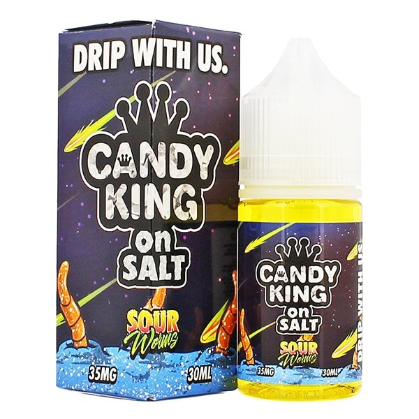 Sour Worms E-Liquid by Candy King on Salt is one of the most perfectly executed Trolli Sour Brite Crawlers flavors out there. It takes the sweet and sour gummy flavors of orange, lime, lemon, strawberry, cherry, raspberry, then connects them all somewhat like a human centipede and finishes them off with a heavy dose of granulated sugar.