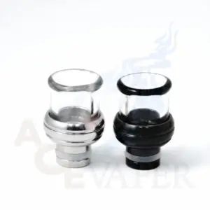 This is a clone of a popular Trinity drip tip. Wide bore, stainless or black base with the glass top.