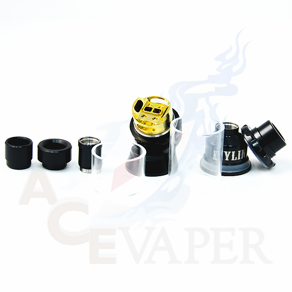 The Kylin RTA features a top fill system,(now comes with top fill ring!) adjustable airflow, juice flow control, a 6mL conversion kit, and a spectacularly unique build deck. Constructed out of stainless steel with a glass tank section, the Kylin can be increased in volume with the included tank conversion kit to keep you vaping longer in between tank refills. Adjustable airflow is located at the base of the unit and features a knurled ring for an easier grip and less slippage. The unique build deck features a one of a kind design and is a new take on a postless build deck concept. This allows for a completely efficient use of building space to let your craziest builds come to life.