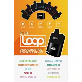 Discover a new era of vaping with the STLTH Loop System launch! Immerse yourself in innovation as we unveil a revolutionary vaping experience. Explore cutting-edge features, bold flavours, and unmatched convenience: Apple Kiwi Melon Ice, Dragon Berry Mango Ice, Ice Mint, Tropical Storm Ice, Blue Razz Lemon Ice, Green Apple Ice, Juicy Peach Ice, Rich Tobacco, White Grape Ice.